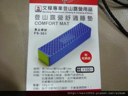 3.睡墊:之前帶露營充氣式睡墊9CM厚,這重量太重,此發泡式睡墊非常輕盈,收納方便,而且為台灣製,品質不錯。